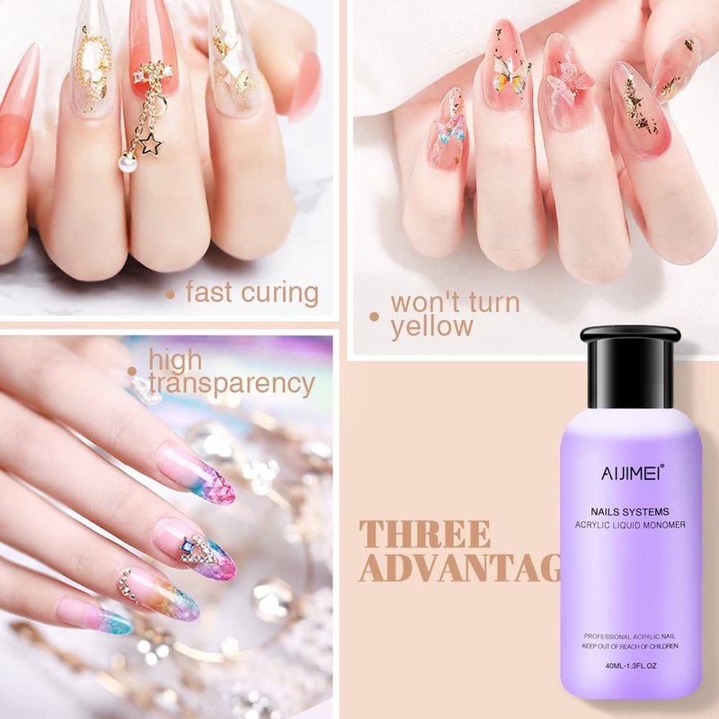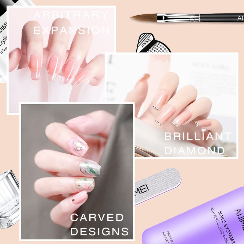 - 🍑【Acrylic Nail Kit】: AIJIMEI acrylic powder and liquid monomer set, the acrylic powder provides amazing control with its ability to self level and adhere to the natural nail,come with monomer acrylic nail liquid create a protective layer.