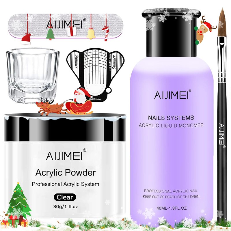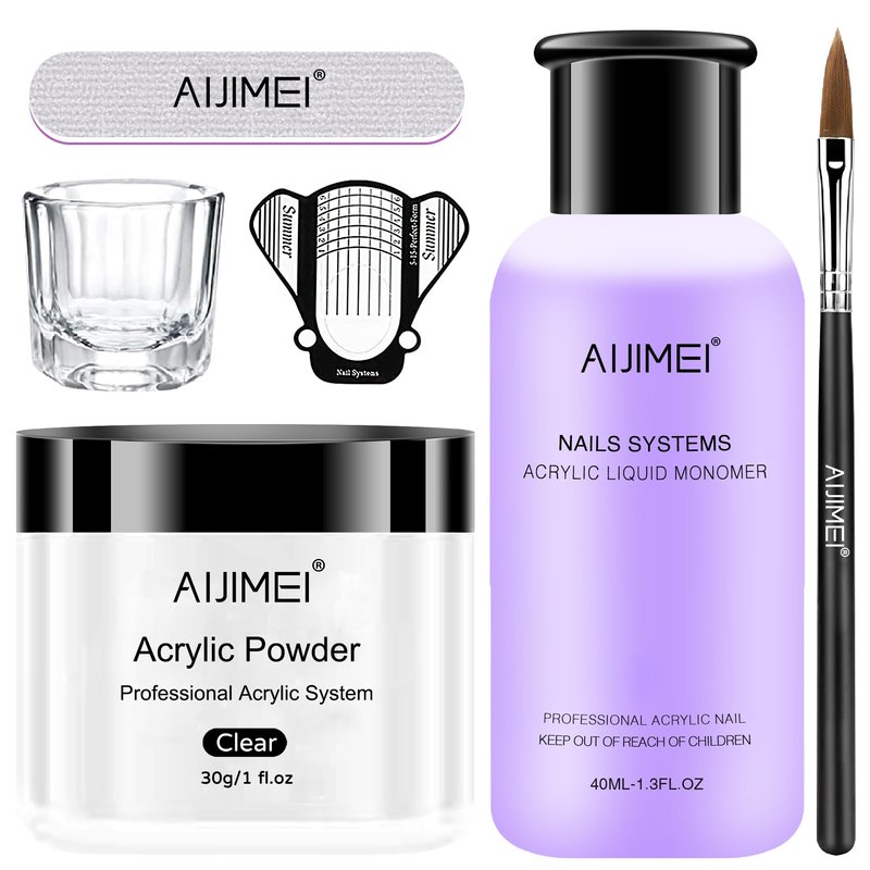 - 🍑【AIJIMEI Professional Acrylic Nail Kit with Everything】:1 pcs clear acrylic powder,1 pcs liquid monomer,1 pcs acrylic nail brush,20 pcs nail forms,1 pcs nail file,1 pcs glass cup.