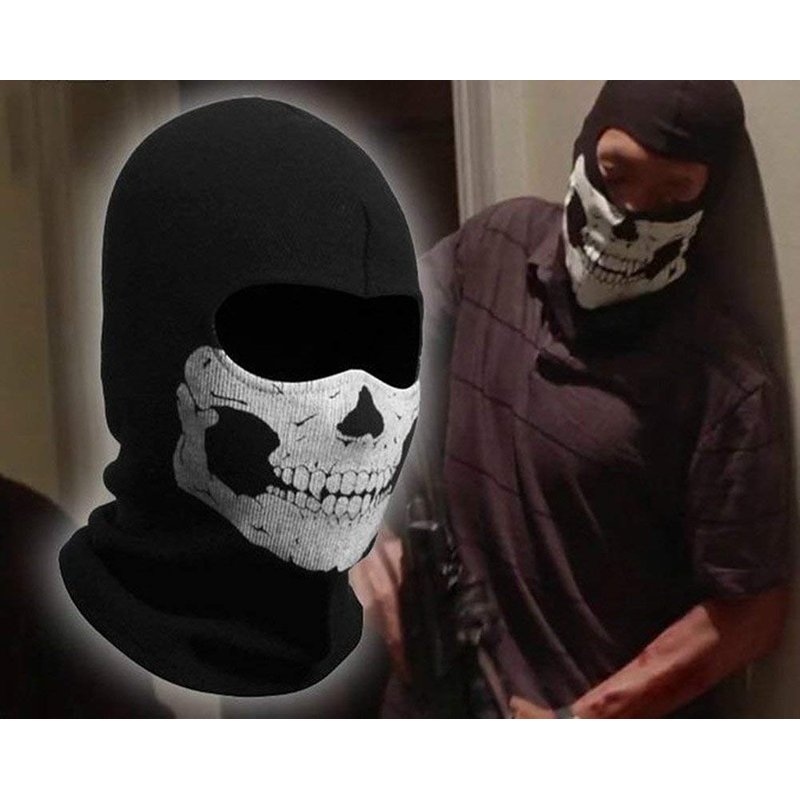 - Lightweight black balaclava skull full face mask. Material: thread cloth.