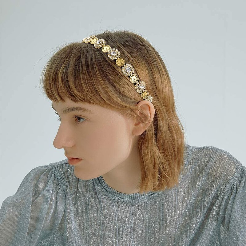 Aileam Headband Diamond Hair Band Baroque Gold Hair Hoop Fashion Metal Hair Accessories for Women and Girls