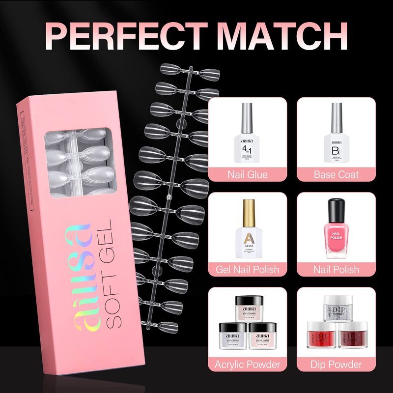 - SOFT GEL DESIGN - The gel tips are made of high-quality soft gel material, with strong toughness and malleability, not easy to break. No matter how you twist, it will return to the original shape in a few seconds. The no crease design also makes it color more evenly, easier to DIY your ideal nail art effect. The soft gel full cover nail tips can use together with nail polish, color gel, dipping powder, etc., adding a bright color to your life.