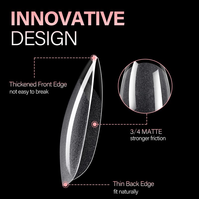 - INNER MATTE TEXTURE - The nail tips choose inner frosted texture, with stronger friction, better fitting your natural nails. You can stick the full nail tips with nail glue directly, enjoying the privilege of “ NO NEED FILE ”. Also, the nail tip is pre-shaped, saving your time and effort. No worry that your nails will become thinner and uglier due to polishing, providing better care for your nails. If gel nail tips can be matched with AILLSA nail glue, you will get better result.