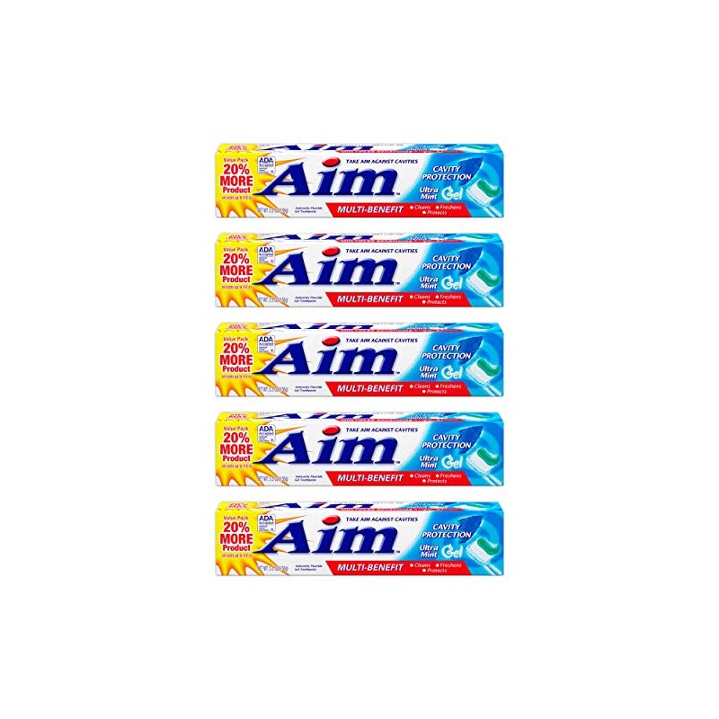 Aim Multi-Benefit Cavity Protection Gel Toothpaste, Ultra Mint 5.50 oz (Pack of 5)