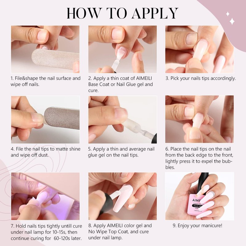 - 2 In 1 Nail Glue Gel: AIMEILI 15ml NAIL GLUE GEL could be used for nail tips adhesive, and it could still be used as gel base coat for better protection and adhesive!