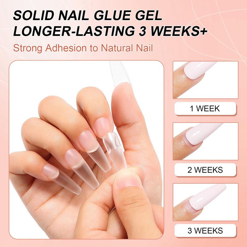 - Package included: 1pc Solid Builder Nail Gel (15g) + 1pc Solid Nail Glue Gel (15g)