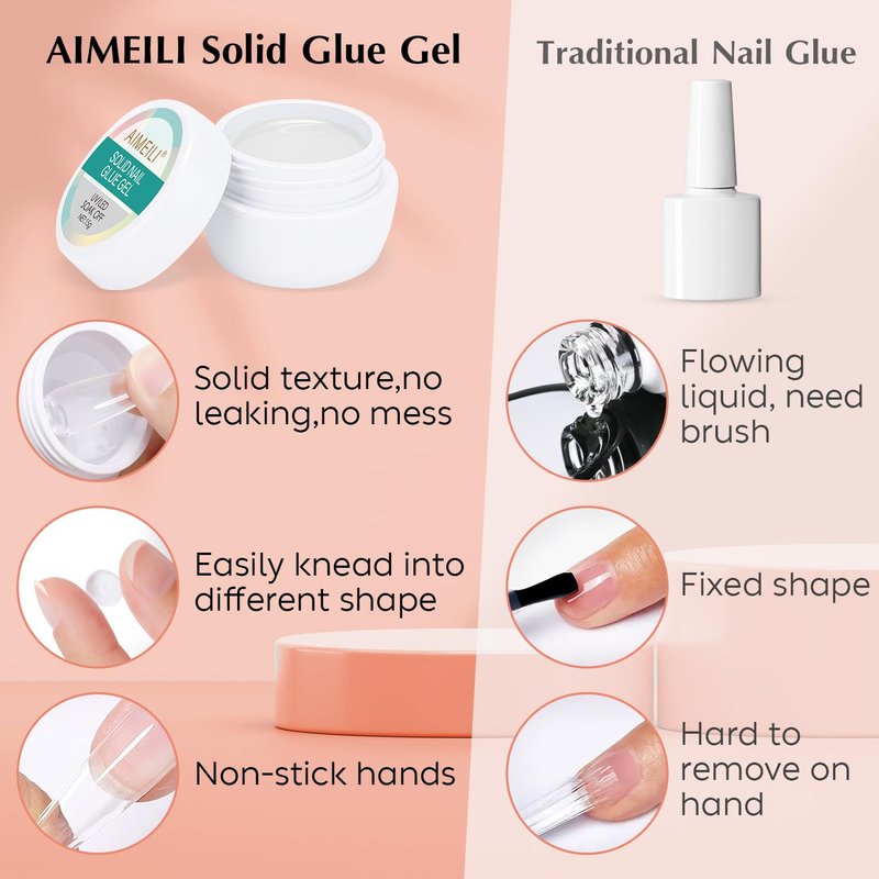 - 4 in 1 Solid Nail Gel: AIMEILI Solid Nail Gel can be used as nail extension gel, u v nail glue gel for acrylic nails, gel tips or press on nails, nail rhinestone glue gel and nail sculpture gel for 3D nail art decorations DIY. Hema-free formula of u v led solid builder&glue gel for nails make it more gentle to apply gel nails safer and healthier.
