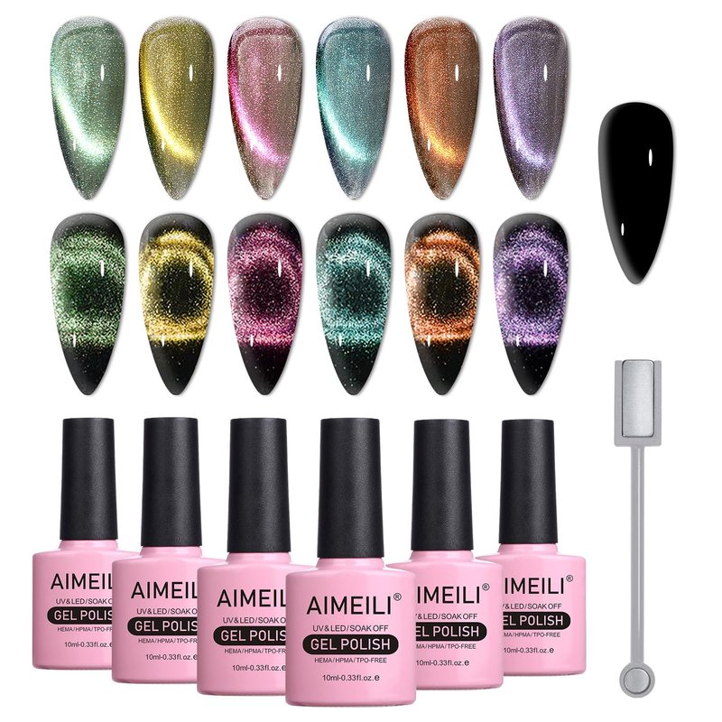 AIMEILI Cat Eye Gel Nail Polish Soak Off U V LED Hema Free Nail Polish Nail Art Manicure Color Set Of 6pcs X 10ml - Kit Set 48