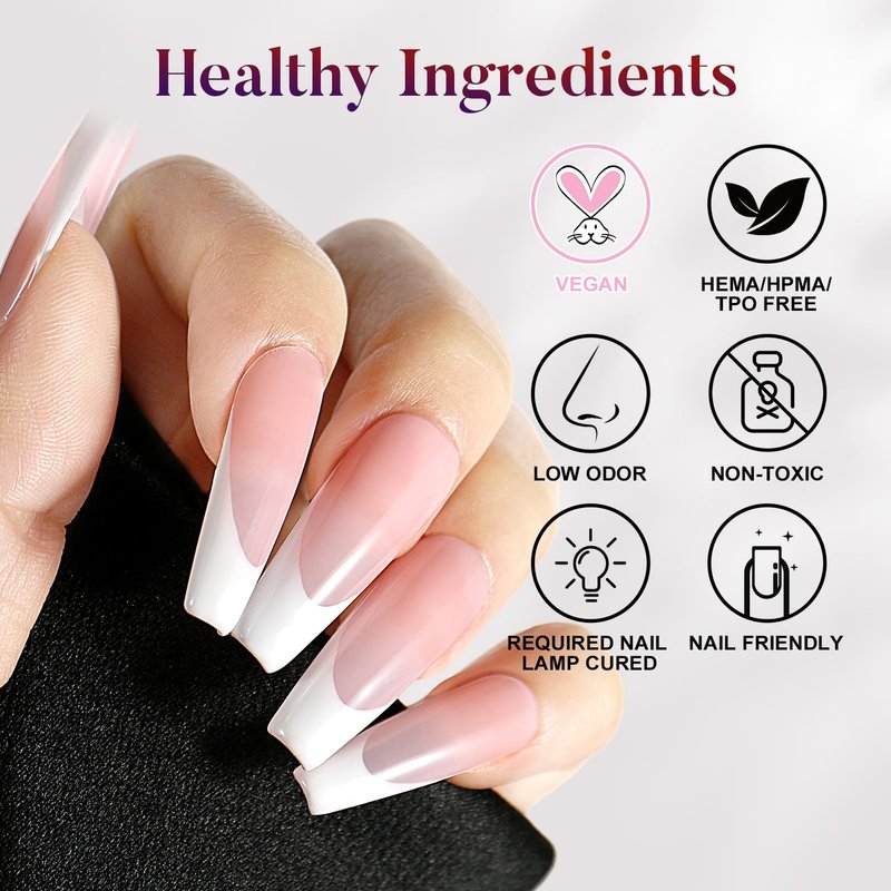 - UPGRADED HEMA-FREE Gel Nail: Natural Resin, Toxin Free, HEMA-Free, HPMA-Free, TPO-Free formula of nail polish gel for nail art make it more gentle to apply to your nails safer and healthier. It is normal for color nail polish gel to remain sticky after curing, which will make a better adhesion between gel layers. The top coat gel would seal it all in for better nail performance.