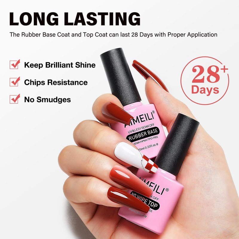 AIMEILI Rubber Base and No Wipe Top Coat Kit Set