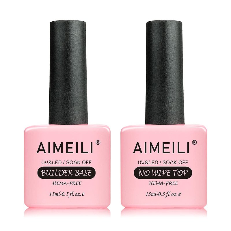 - AIMEILI Builder Base and No Wipe Top Coat: Long lasting for 28+ days with shine. Builder base can be used as Builder Nail Gel & Base Coat & Nail Reinforce Lacquer. No wipe top coat avoid nicks, chips or smudges.
