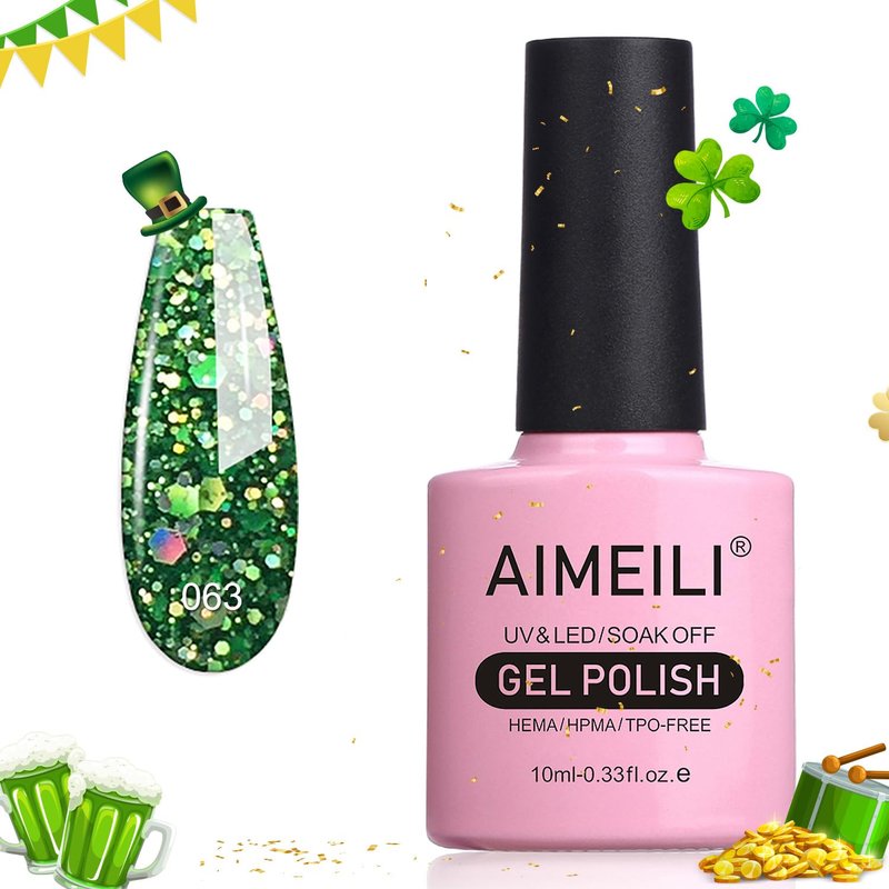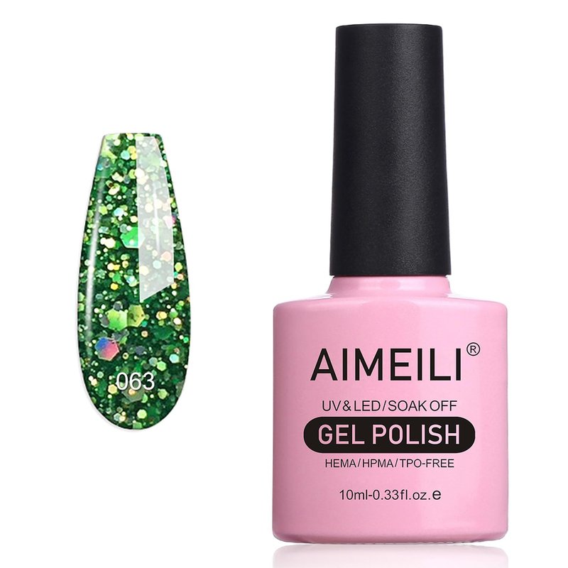 AIMEILI Soak Off U V LED Gel Nail Polish - Diamond Glitter Fire Green (063) 10ml