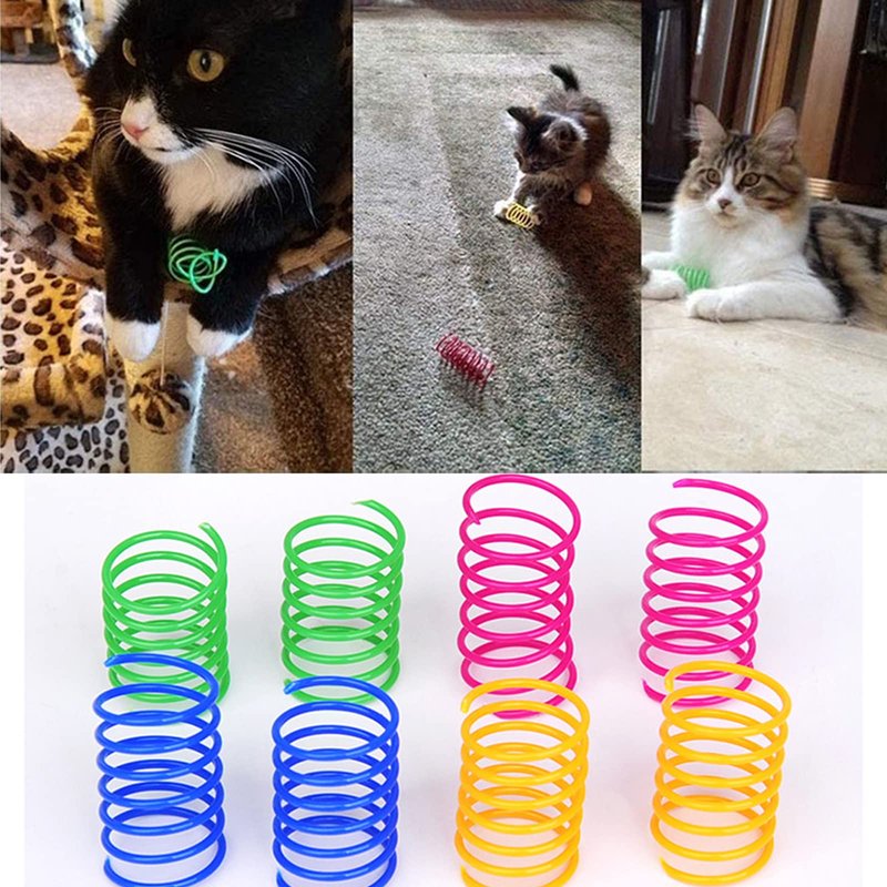 - 4 Bright Colors: Multicolor and bright colors add to the fun. Bright colors are more attractive to kittens. Our cat spring toys contain 4 bright colors of yellow, green, pink and blue, Catering to the preferences of kittens