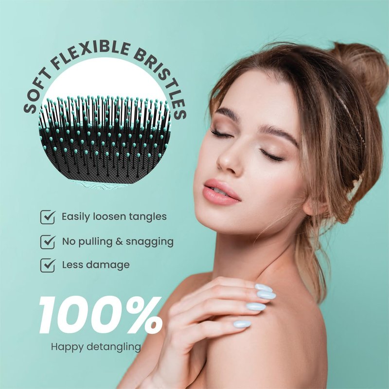 - Tangle Terminator: Gone are the days of tugging and tearing through knots and tangles. Our anti-tangle bristles of hairbrush are soft and flexible, can penetrate deep into hair without pulling or breaking hair strands like a regular hairbrush, gently remove knots and tame the frizziness to gain silky smooth hair! Our detangling hair brush makes detangling a breeze