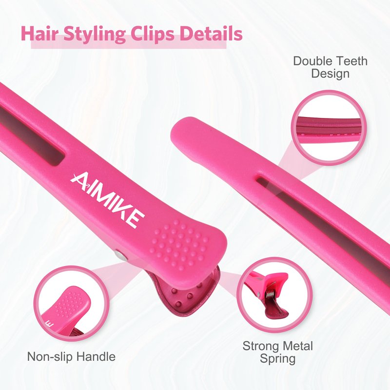 - 💖【Upgraded Premium Material】AIMIKE hair styling clips boast premium quality construction. The top part is made of durable ABS plastic with a matte finish. While the smooth metal bottom is electroplated for more attractive and rust resistance. Thanks to the highly elastic metal spring, these duck billed hair clips easily hold large amounts of hair securely in place.