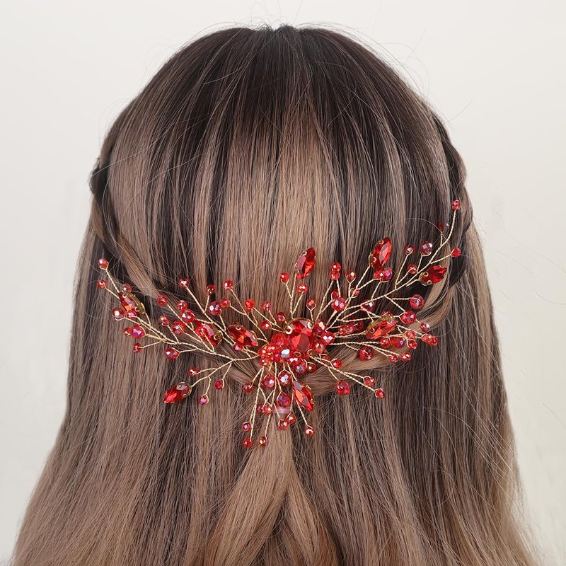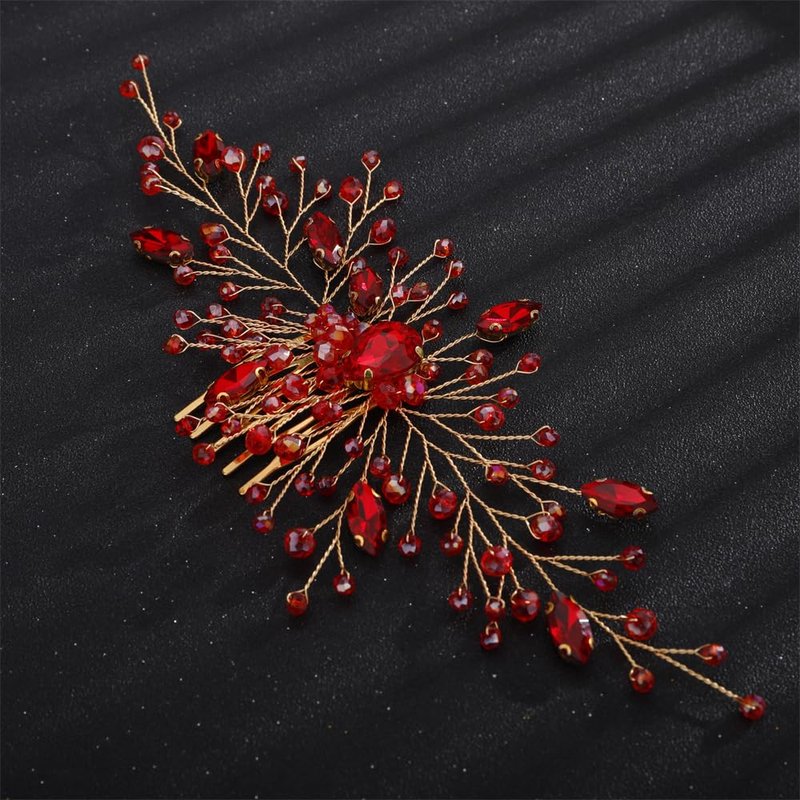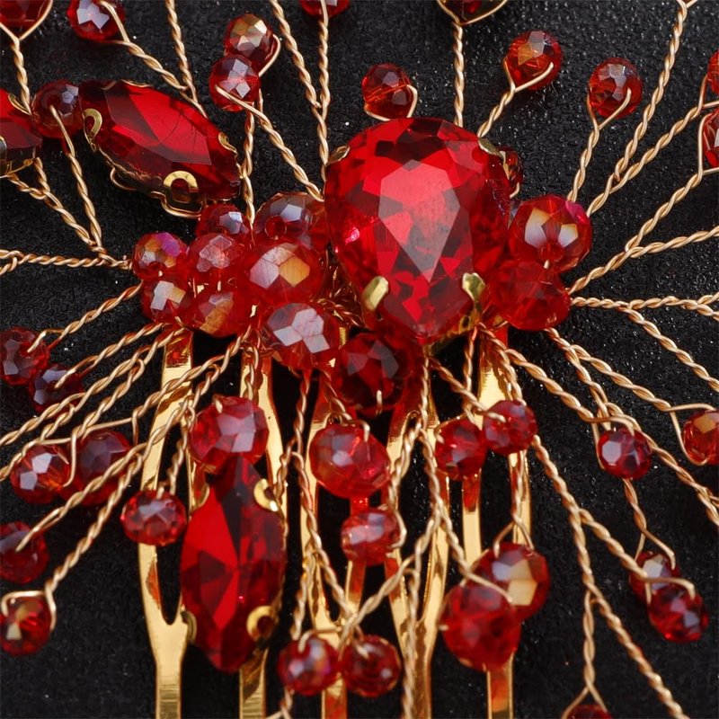 Aimimier Bridal Red Crystal Hair Comb Ruby Rhinestone Gold Hair Vine Side Comb Prom Party Festival Wedding Hair Accessories for Women (Red)