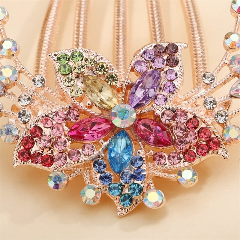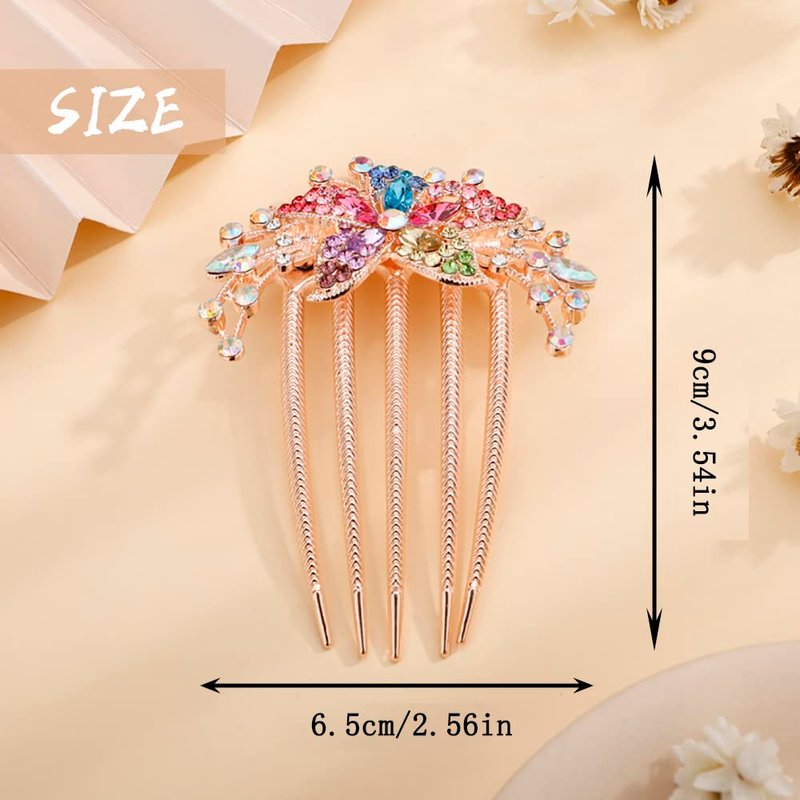 Aimimier Flower Crystal French Hair Comb Luxury Rhinestone Gem Side Combs Long Teeth Hair Pins Styling Hair Accessories for Women Girls(Colorful)