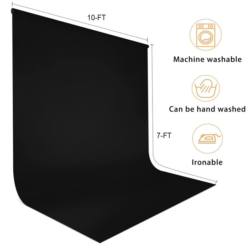 - ▶7 x 10 FT BLACK PHOTO BACKDROP◀ This black backdrop is 7 x 10 ft (2.13 x 3.04 m) in size. Nice soft and pure black background with a non-reflective surface, designed for portrait photos, photography shooting, making videos. Please note: This package does not include the background stand.