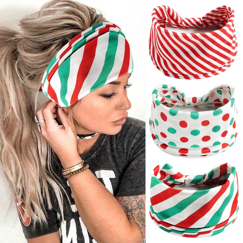 Ainuno Wide Boho Christmas Headbands for Women Red Green Polka Dots Stripe Workout Thick Party Bandana Headband Winter Fashion Yoga Head Bands Hair Knotted Elastic Stretch Headwear Pack of 3