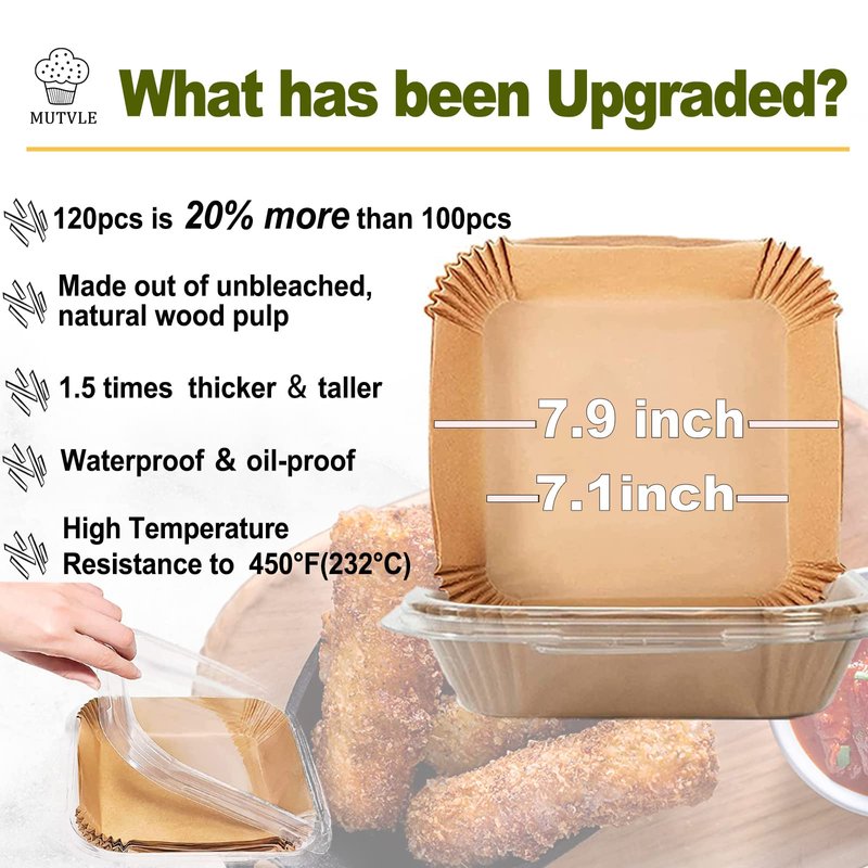 - 【Easy to Use】These non-stick air fryer disposable paper liner are designed with a square bowl shape, which do not need to tear, fold, cut, nor bend, and you can directly put it in when you are ready to cook. Its heightened edge 4.5cm can protect the side of fryers and prevent food from sticking to them.
