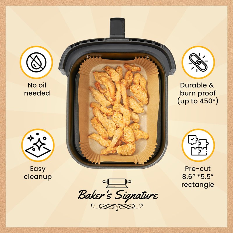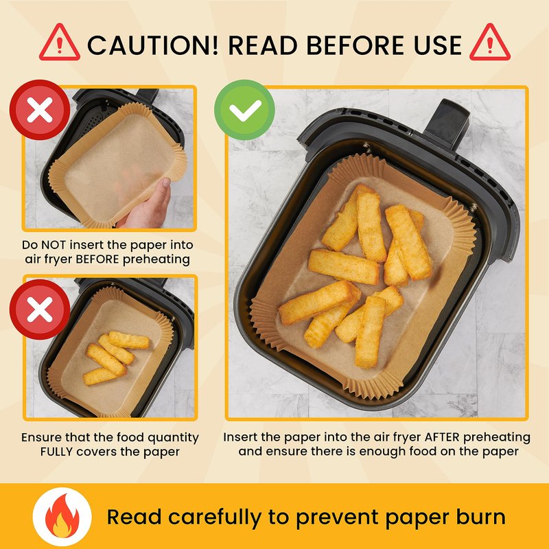 - EASIER CLEANUP & TIME SAVINGS - Simplify your cooking routine with our rectangular disposable air fryer paper liners. Effortless clean-up means more time enjoying your meals!