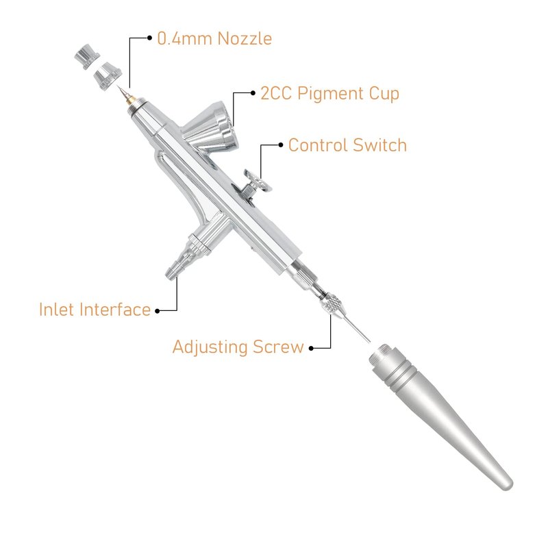 Standard Nozzle Dia.: 0.4mm (0.4mm-0.5mm:for coarse particles paint(water fill soil, metallic paint),for beginners )