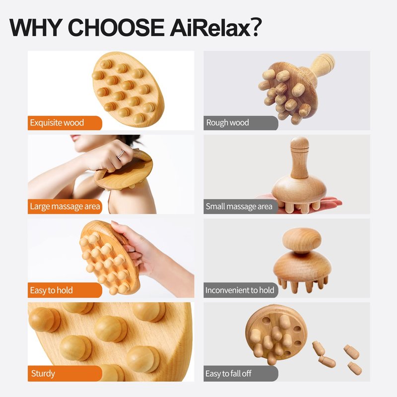 AiRelax Wood Therapy Massage Tools,Wooden Massage Body Brush for Cellulite Remover,Itchy Skin Relief,Body Shaping,Professional Maderoterapia Kit Colombiana,Lymphatic Drainage Massager(1 Pack)