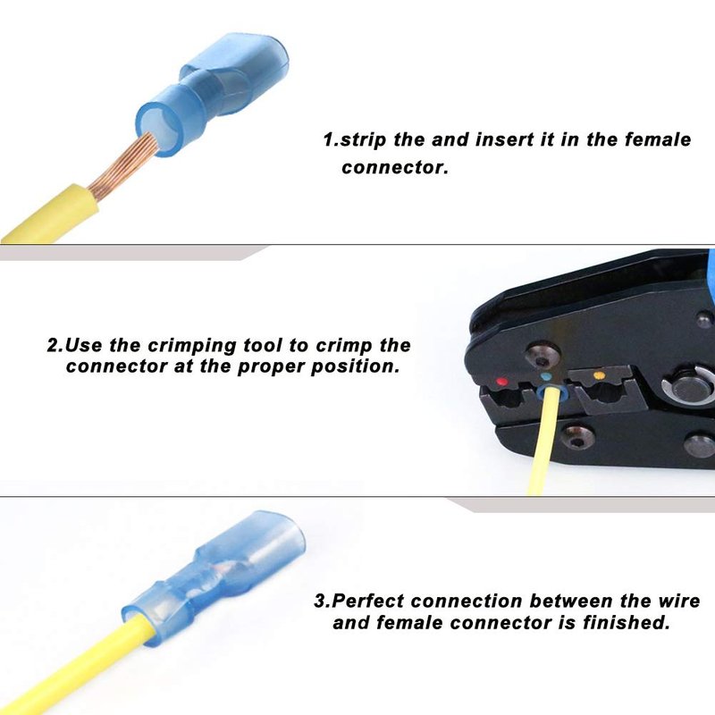 - Quantity: Pack of 100 female fully insulated wire crimp terminals