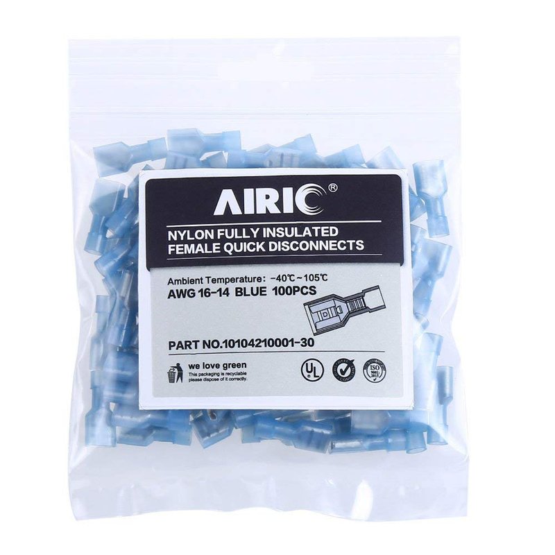 AIRIC Blue Female Spade Connector 16-14 AWG, 100 pcs Nylon Electrical Crimps Terminal Connectors for Automotive Speaker Auto Stereo Wiring Connect Quick Disconnect Crimp Terminals for 16,14 Gauge Wire