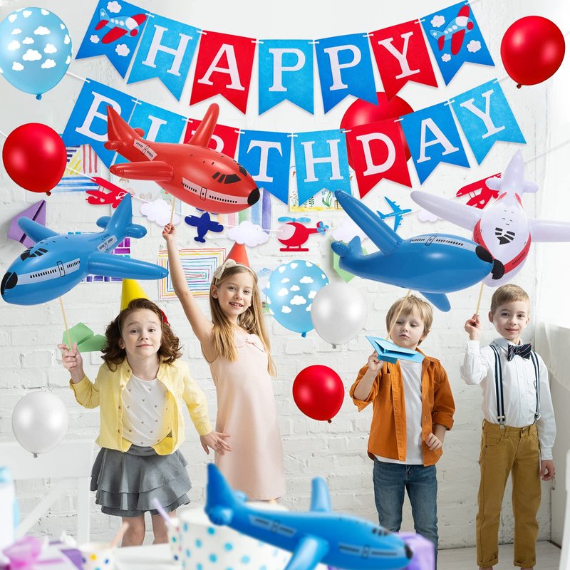 Airplane Birthday Party Supplies 56 Pieces Airplane Themed Party Decoration with Inflatable Airplane Balloons Thick Latex Balloon Happy Birthday Banners Airplane Cloud Balloon Decor