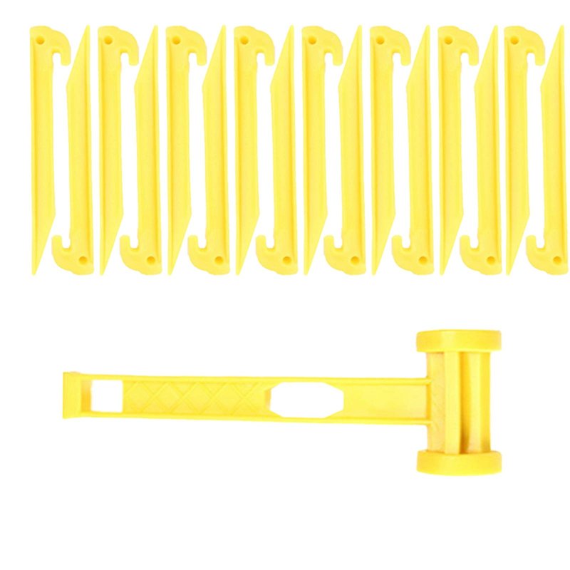 AITIME 30 Pcs 9 Inch Plastic Tent Stakes with 1 Yellow Puller Hook, Durable Garden Lawn Tarp Stakes, Tent Spikes Nails Pegs Hammer for Outdoor Beach Camping Courtyard Decorative Accessories