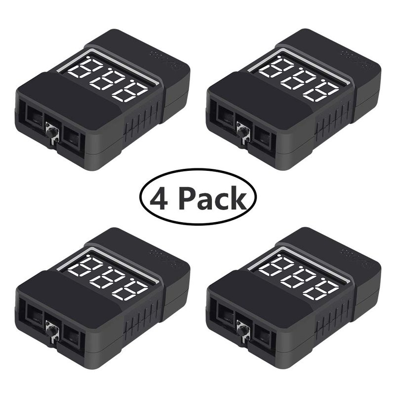 AITRIP Lipo Battery Tester,4Pack BX100 RC 1-8S Low Voltage Buzzer Alarm Super Sound Warning Checker with LED Indicator for Lipo Life LiMn Li-ion Battery
