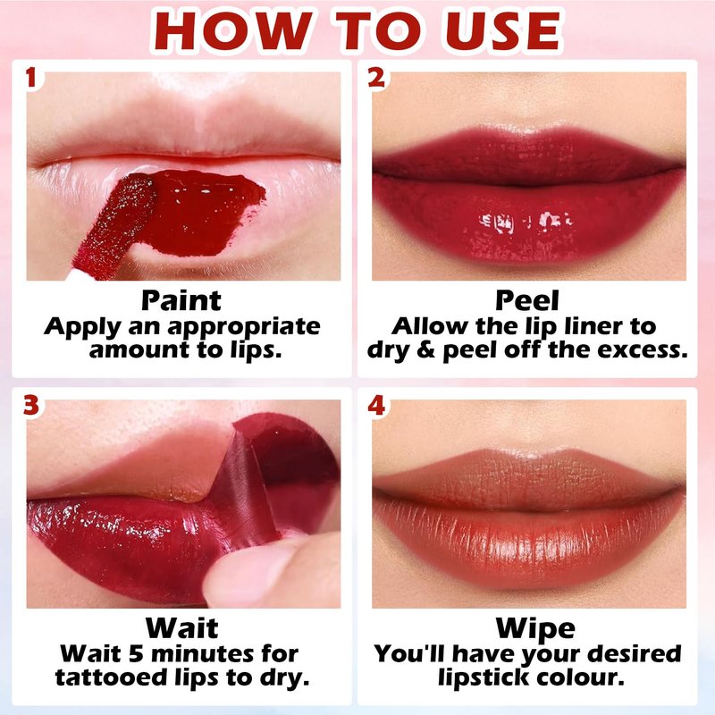 - 【Waterproof & Long-lasting】Lip stain peel off is waterproof and kiss-proof,non-sticky cups and non-fading,lasts for a long time.Even in the hot summer,you can maintain perfect lip makeup for a long time and experience a long-lasting gorgeous lip color.