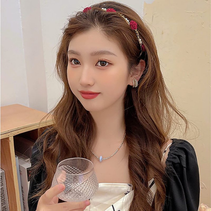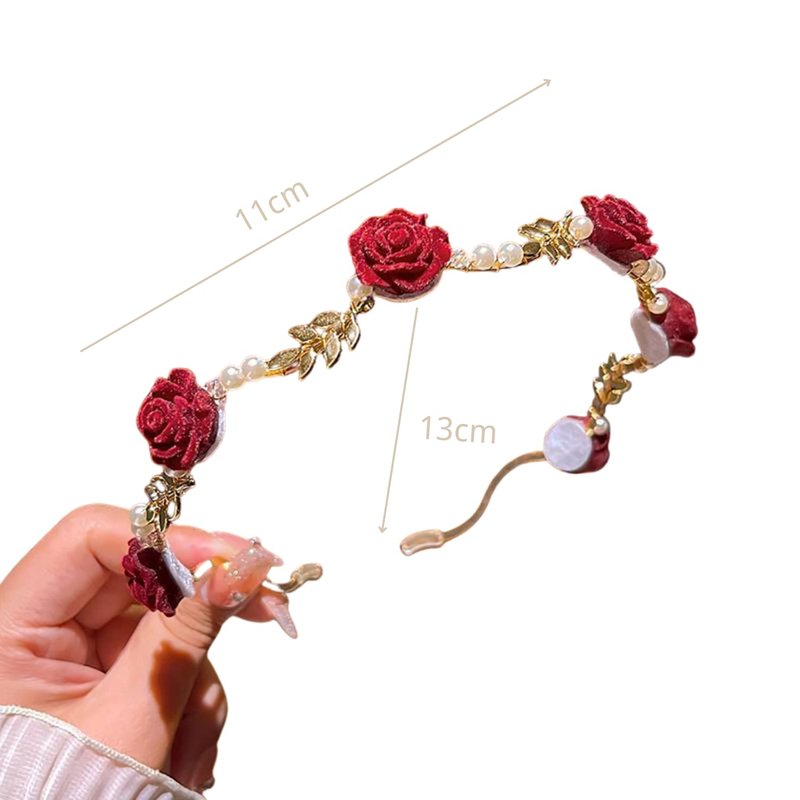 AIUPUOC Hairband, Red Rose Flower Metal Hair Accessories, Exquisite Hair Hoop Hairbands Hair Band Hairpin for Women Girls Scrunchies 1Pcs