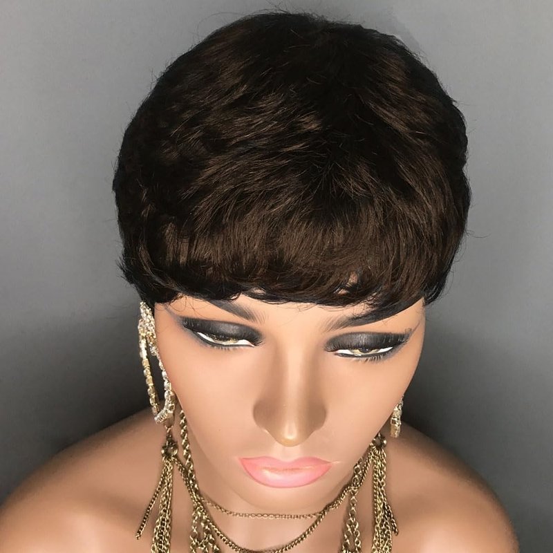 - Full Head Women’s Natural Pixie Cut Wigs,130% Density , Brown Short Pixie Cut Wigs 4# Color