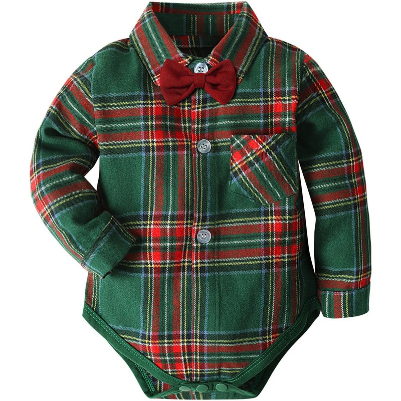 A&J DESIGN Infant Baby Boy Flannel Buffalo Dress Shirt Gentlemen Tartan Bodysuit Long Sleeve One Piece Formal Rompers 3-6 Months Plaid Green