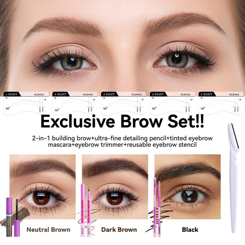 - 【EYEBROW PENCIL EYELINER KIT】Sculpt beautiful brows with our ultra-skinny Brow Pencil, which includes dual-sided pencil and brush, dual-sided brow gel and detailing pencil, tinted eyebrow mascara, eyebrow trimmer, and eyebrow stencil. 1 minute to create a flawless, symmetrical brow!