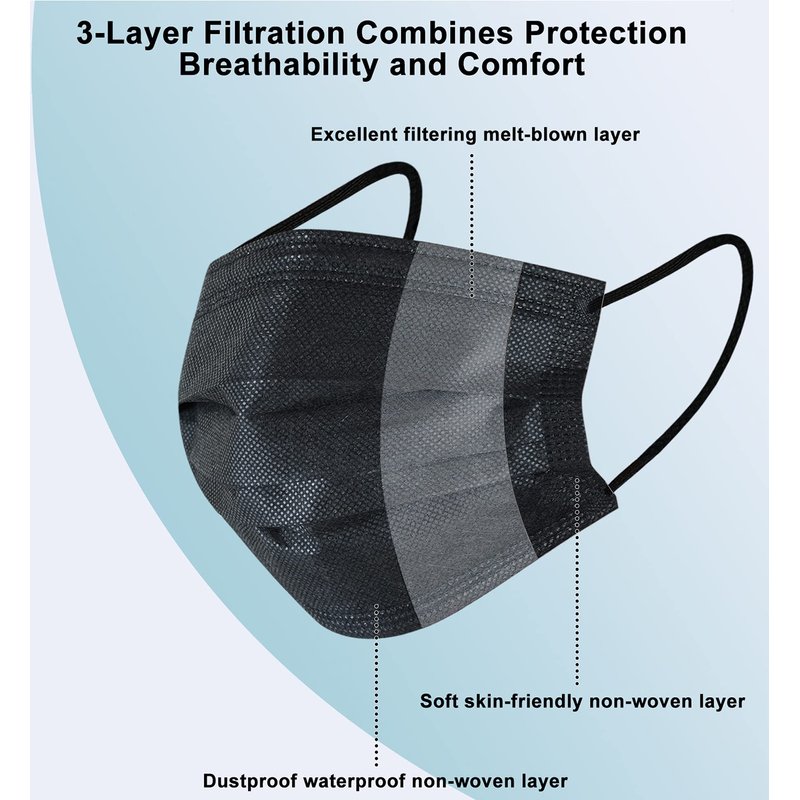 akgk 100Pcs Disposable Face Masks, Black Face Mask, 3 Ply Disposable Mask