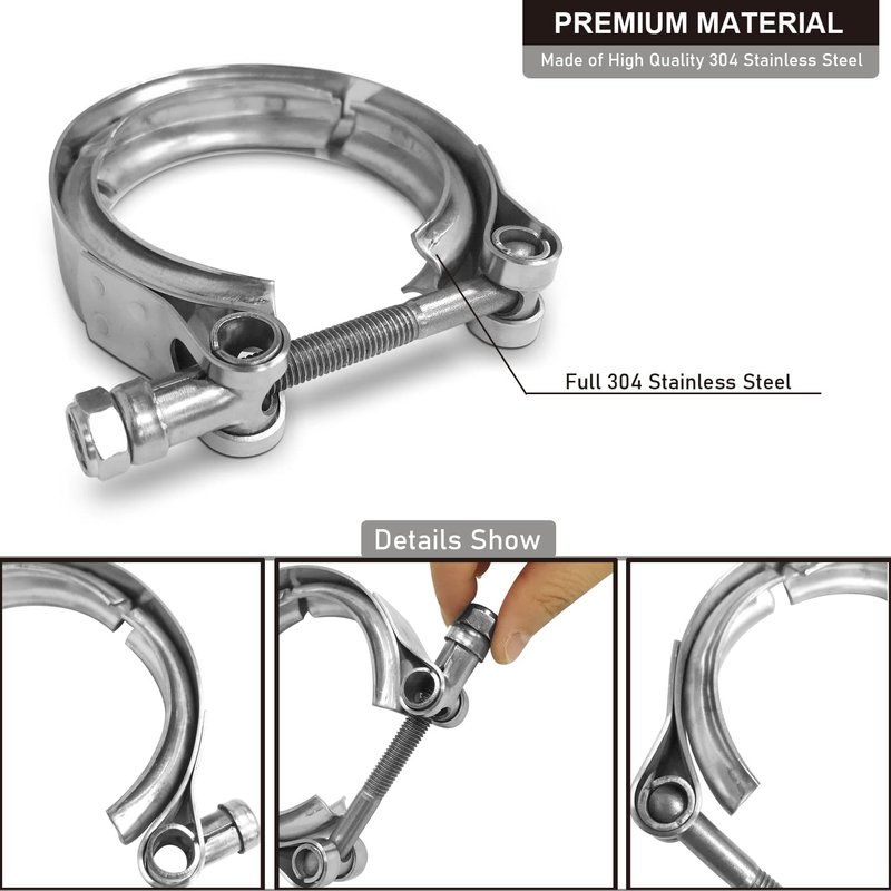 Applications - The V-Band Clamps offer effective fastening solutions in exhaust systems, remove intercooler systems and turbo parts. such as charge piping, intake pipes, diesel engines, turbochargers, and heavy-duty exhaust systems. Etc. V-band kit is ideal for connecting different pipe sections.