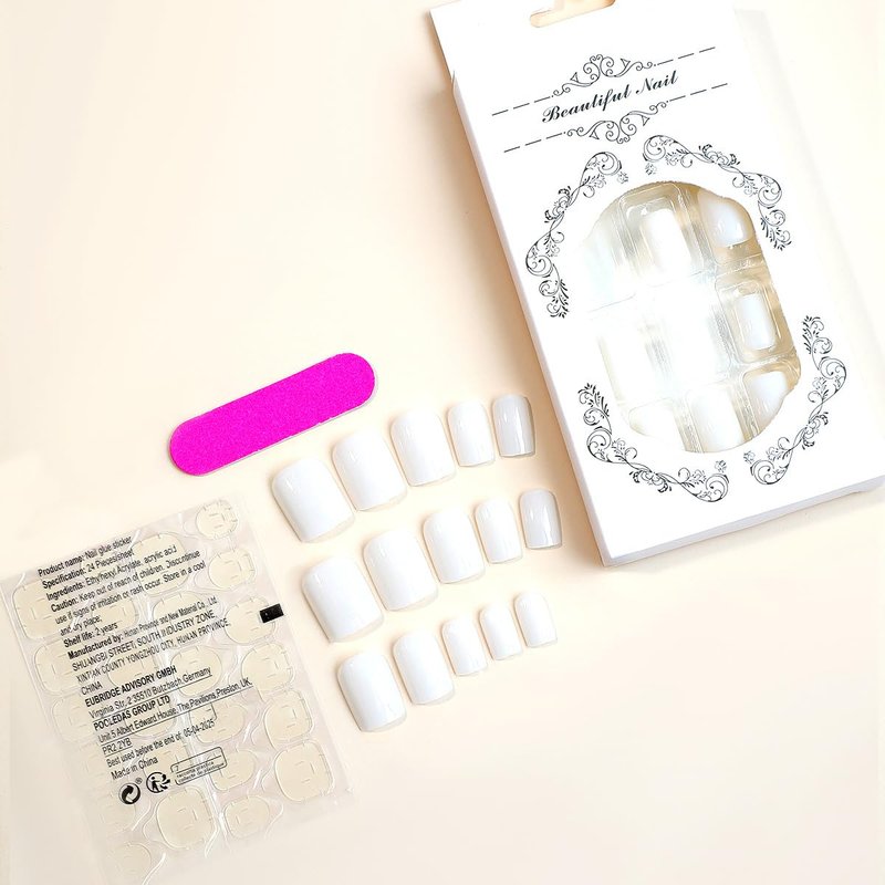 - Style: White Press on Nails Square