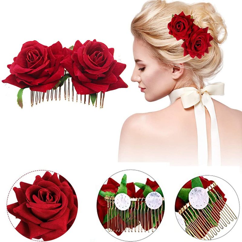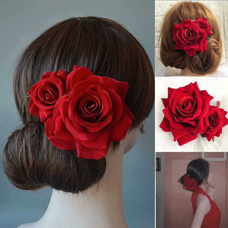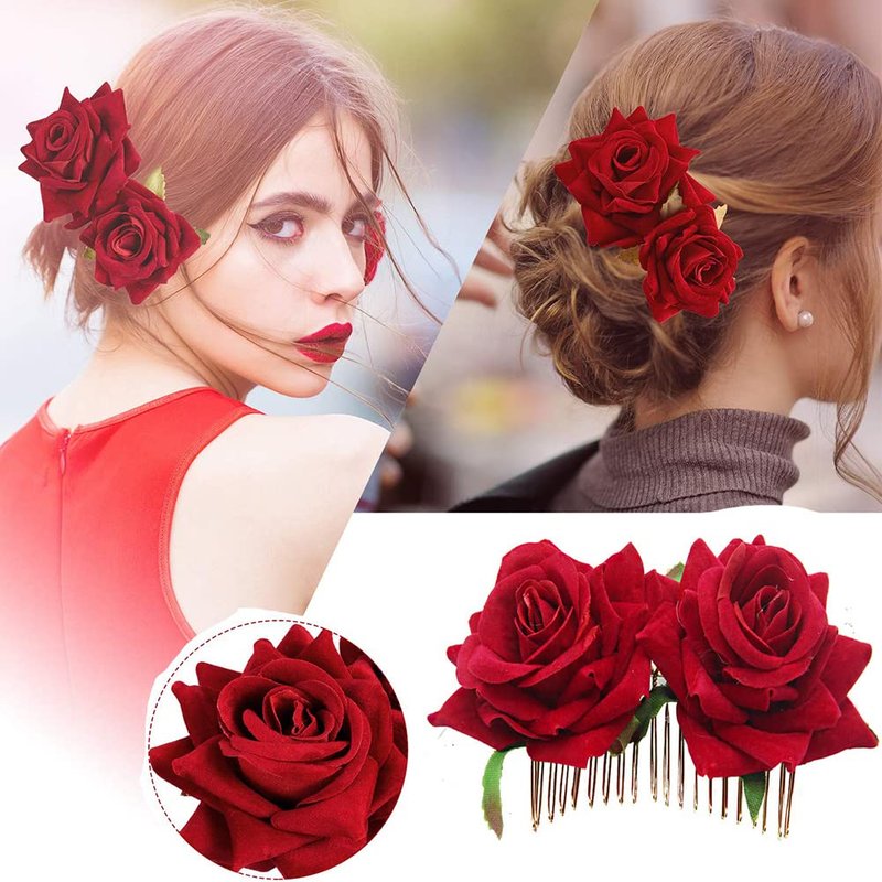 - Beautiful rose flower shapes with cascading and sturdy petals, bright red colors and vivid details make them look like real flowers, great for adding a vintage style to your hair.