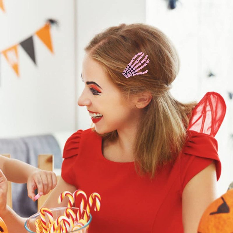 AKOAK 2 Pairs (4 Pcs) Halloween Hair Clip with Skeleton Hand Claw, Female Hair Styling Accessories for Girls (Pink)