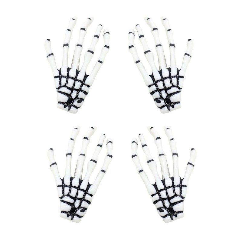 AKOAK 2 Pairs (4 Pcs) Halloween Hair Clip with Skeleton Hand Claw, Female Hair Styling Accessories for Girls (White)