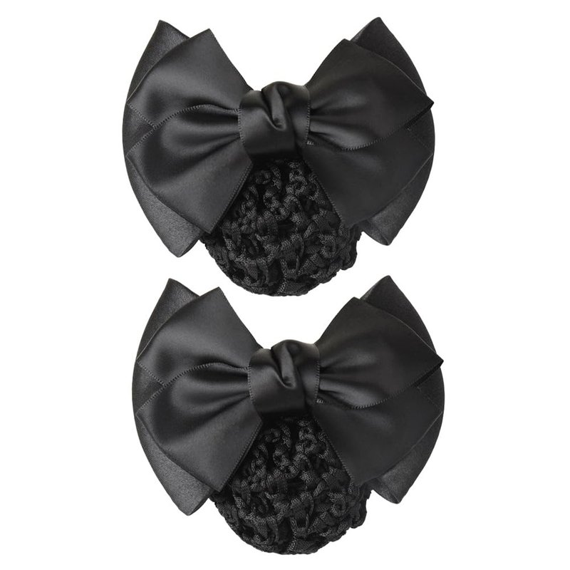 AKOAK 2 Pcs Black Bowknot Decor Snood Net Barrette Hair Clip Bun Cover