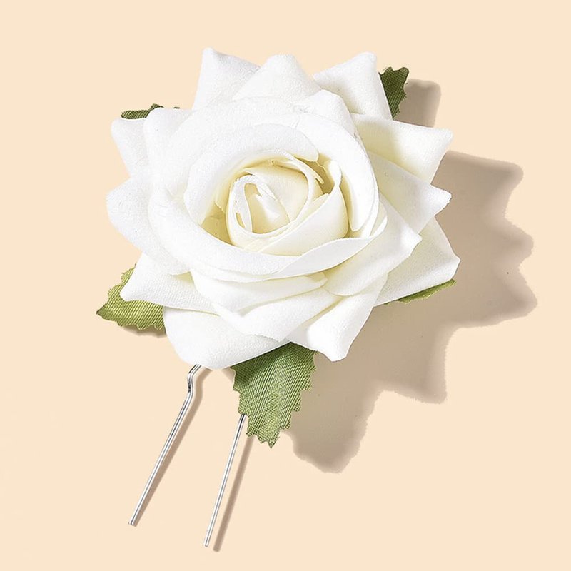 AKOAK 2 Pcs Bride Rose Floral Pin Elegant Red Bridal Hairpin Imitation White Rose U-Shaped Hair Fork Wedding Hair Accessories Fabric (White)