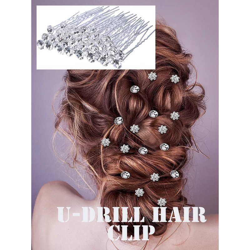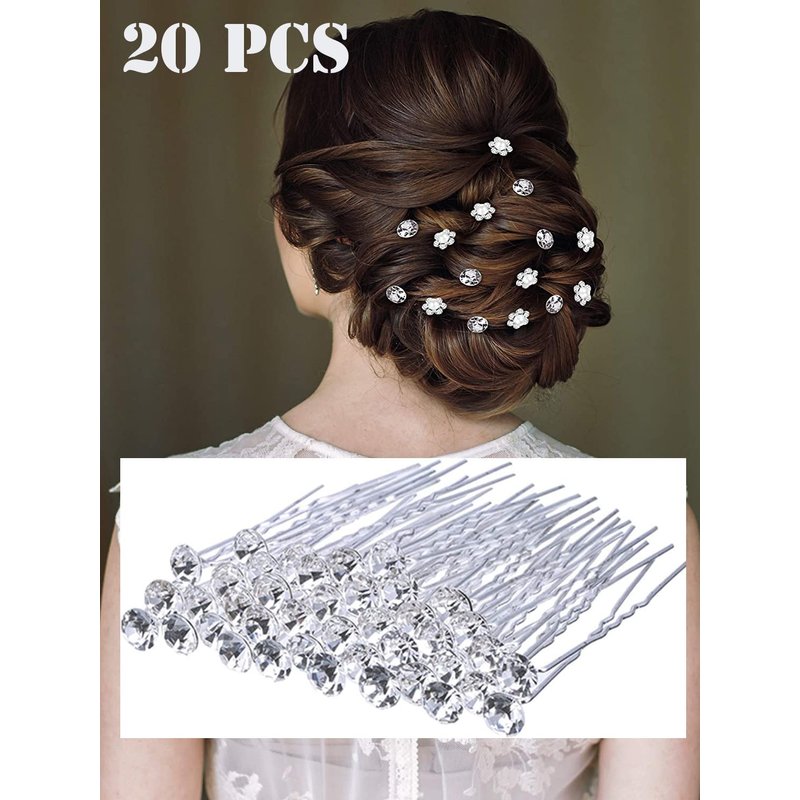AKOAK 20 Pieces Bridal Wedding Hairpin, Single Drill U-shaped Hairpin, Rhinediamond Hairpin Bridal Women's and Girls' Hair Accessories for Wedding Ball Parties Special Events