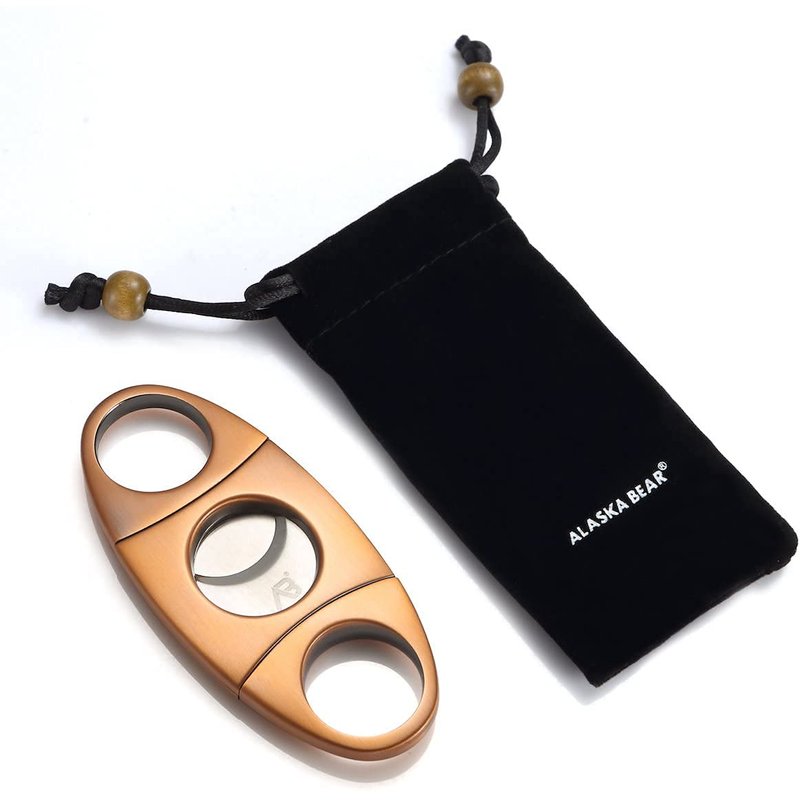 ALASKA BEAR® - Antique Bronze Cigar Cutter Stainless Steel Guillotine Double Cut Blade in Black Gift Pouch