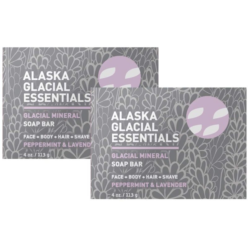 Alaska Glacial Essentials 2-pack Glacial Mineral Soap Bar PEPPERMINT & LAVENDER Exfoliates Dead Skin Cells, Detoxifies Pores, Softens Skin 4oz