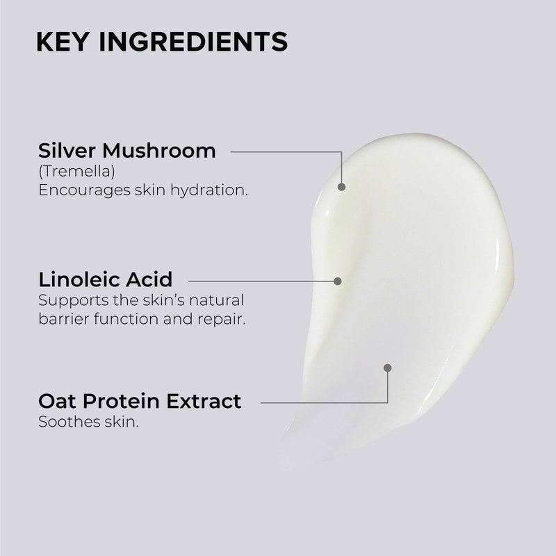 - Ingredients: Water/Aqua/Eau, Caprylic/Capric Triglyceride, Cetearyl Alcohol, Glycerin, Cetearyl Methicone, Dimethicone, Stearyl Glycyrrhetinate, Tremella Fuciformis Sporocarp (Silver Ear Mushroom) Extract, Glycine Soja (Soybean) Sterols, Hydrolyzed Jojoba Esters, Panthenol, Potassium Olivoyl Hydrolyzed Oat Protein, Betaine, Linoleic Acid, Phospholipids, Tocopherol, Glyceryl Stearate, Ceteareth-20, Polyacrylate-13, Polyisobutene, Glyceryl Oleate, Polysorbate 20, Sorbitan Isostearate, Xanthan Gum, Disodium EDTA, Phenoxyethanol, Potassium Sorbate, Caprylyl Glycol, Benzyl Alcohol, Caprylhydroxamic Acid, Sodium Benzoate, Ethylhexylglycerin, Citric Acid