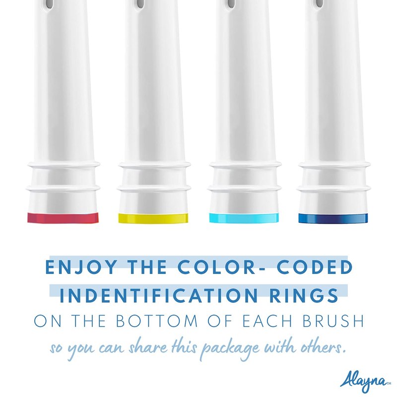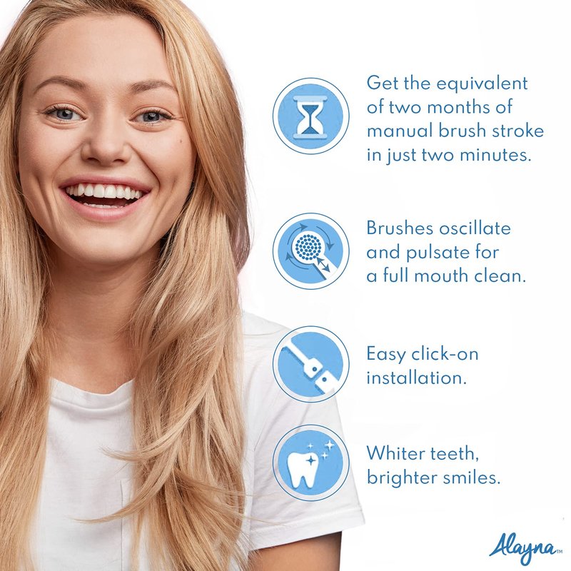 Well then- it’s time to try Alayna’s brush heads. The 16 degree angle bristles cleans deep between teeth.