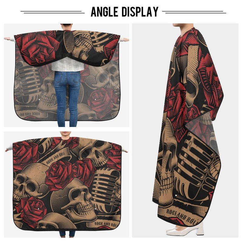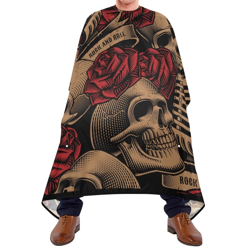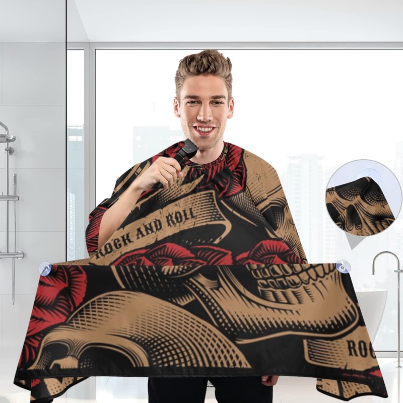 ALAZA Vintage Skulls Music Roses Barber Cape for Men Women, Waterproof Haircut Apron Beard Shaving Bib Hair Cutting Cloth 55 x 65 Inch